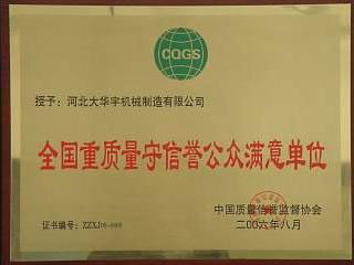 全國重質(zhì)量守信譽公眾滿意單位 |