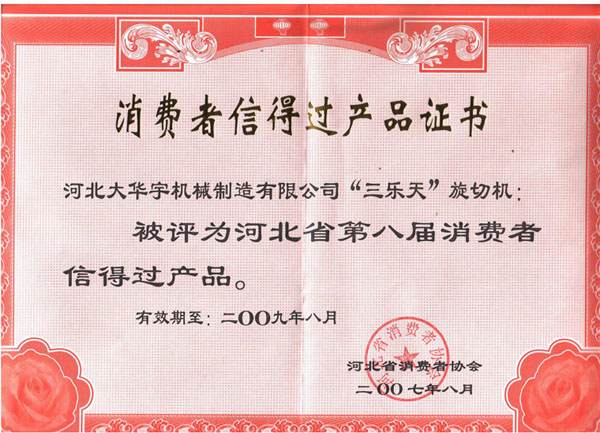 消費者信得過產(chǎn)品證書 |