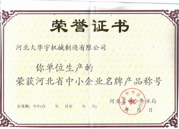 | 河北省中小企業(yè)名牌產(chǎn)品稱號 |